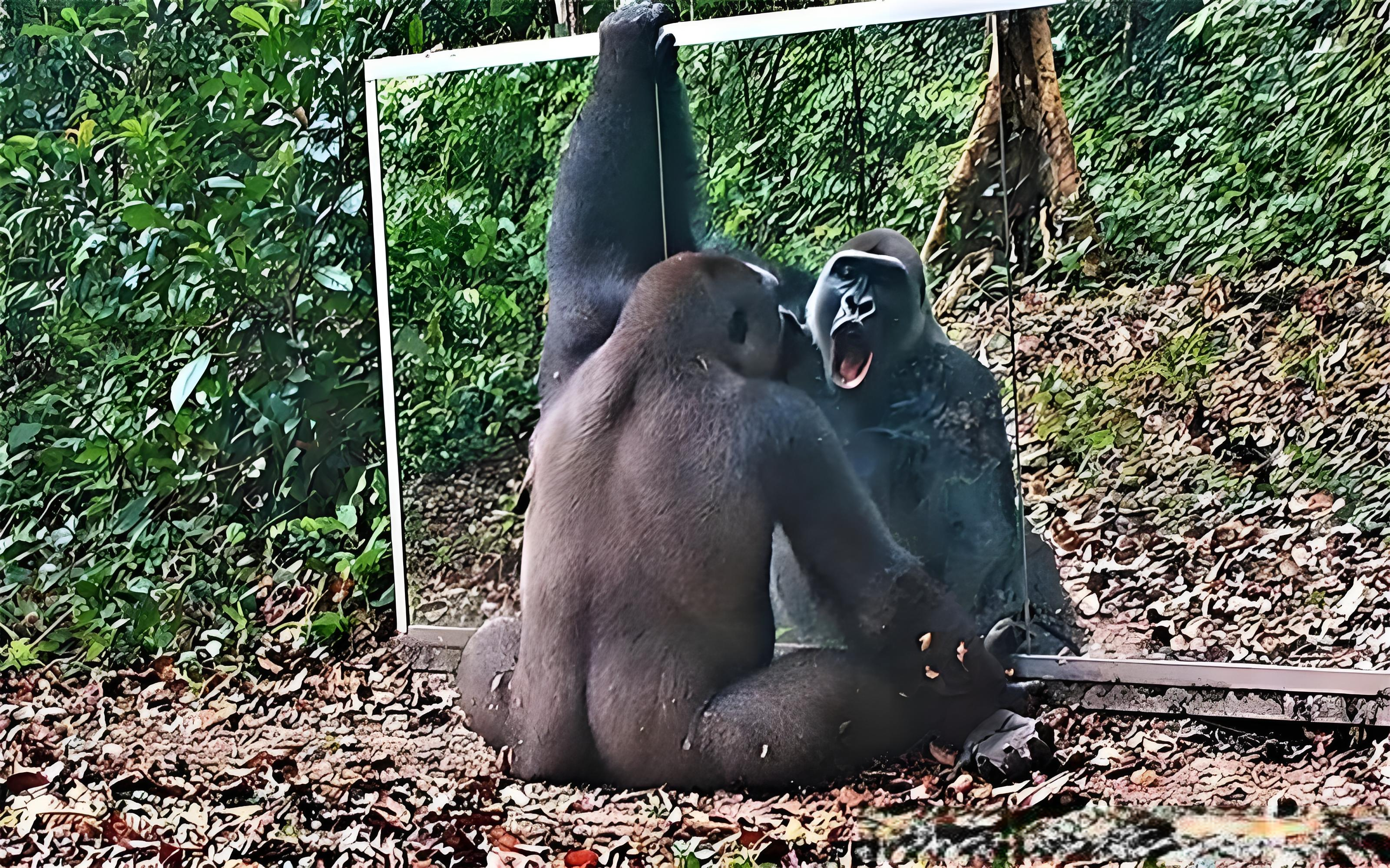 他趁黑猩猩睡着时往它们脑门抹红点,等猩猩醒了对镜一照,它们立马伸手摸我方额头,还对着镜子咨牙俫嘴商议那红点。这确认黑猩猩认得出镜子里阿谁是“我”。
