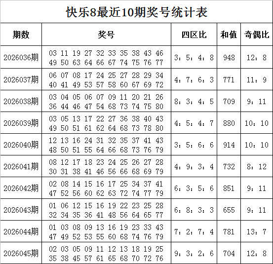 第四区【61-80】号码分析:上期该区开出6个奖号,在历史开奖于今该区出现6个奖号的快意有336次,前5次开出6个奖号之后,其下期奖号分别出当今:第2026043期、第2026041期、第2026032期、第2026030期、第2026011期,其中第四区出号散播为:3个、4个、3个、4个、7个,共开出了21个奖号,走势总体与表面出号个数绝顶,本期提防该区号码连续转温,出现6个奖号,关怀号码62、66、72、76、78、80。