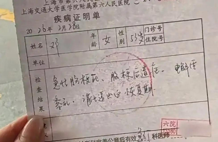 民警和120破门而入的一会儿,通盘东谈主齐揪紧了心:53岁的邓女士躺在冰冷的地板上,已堕入深度眩晕,身边莫得任何急救药物,不知熬了若干个小时。送医后,确诊急性脑梗,因发现太晚,最好调养本事已错过,病情危重到只可靠督察性调养陆续人命。
