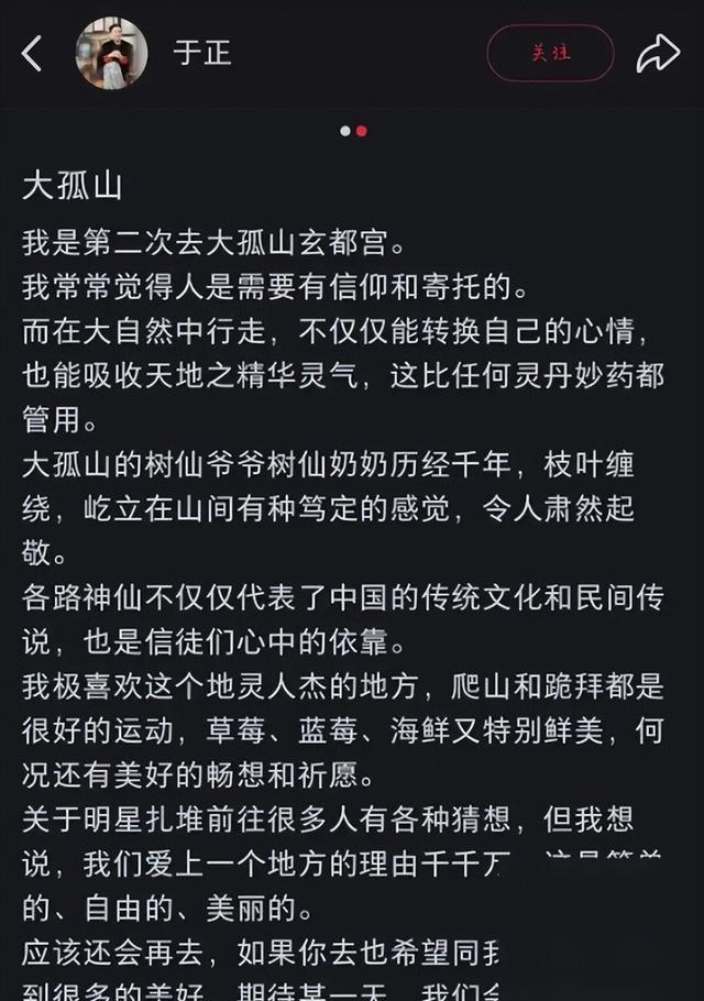 从于正自曝的定位来看,明星们汇注的具体地点是大孤山国度丛林公园里的玄皆宫。