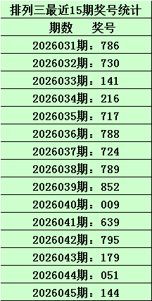上期转头:胪列三2026045期奖号为144,类型为组三,奇偶比为1:2,大小比为0:3,和值为9。 第一位保举:最近30期该位0路号码开出6个,现在遗漏1期,其中号码3出现0次,现在遗漏48期;号码9出现0次,现在遗漏35期;号码6出现2次,现在遗漏4期;号码0出现4次,现在遗漏1期。 第一位1路号码开出14个,现在遗漏0期,其中号码4出现2次,现在遗漏1...