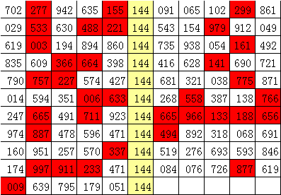 在以上统计表中,组选号码144开出之后,其下期组三号码出现8次,组六号码出现19次。其中,下期奖号有10期无重号,有17期开出重号,本期摒除重号,看好开出组六号码。