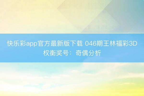 快乐彩app官方下载 046期老郑福彩3D展望奖号:样式遗漏